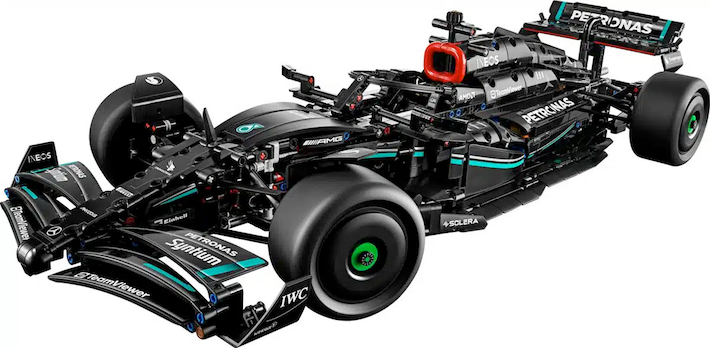 Desde hace algunos meses, en las tiendas de juguetes y modelismo está disponible la increíble réplica LEGO Technic del Mercedes-AMG F1 W14 E Performance. Esta reproducción a escala 1/8 incluye dirección funcional controlable tanto con el volante como con la perilla en el techo del coche. Al retirar la cubierta del motor, se puede admirar el diferencial y el motor de 6 cilindros con pistones móviles.